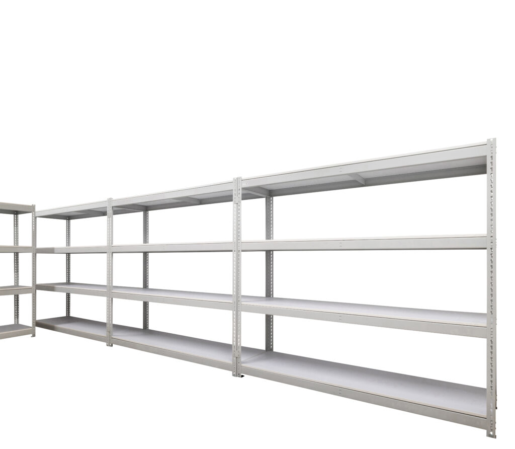 Heavy-duty Longspan Racking (Light Grey) c/w 18mm Thick White MFC Panels, 3 or 4-Tier Units