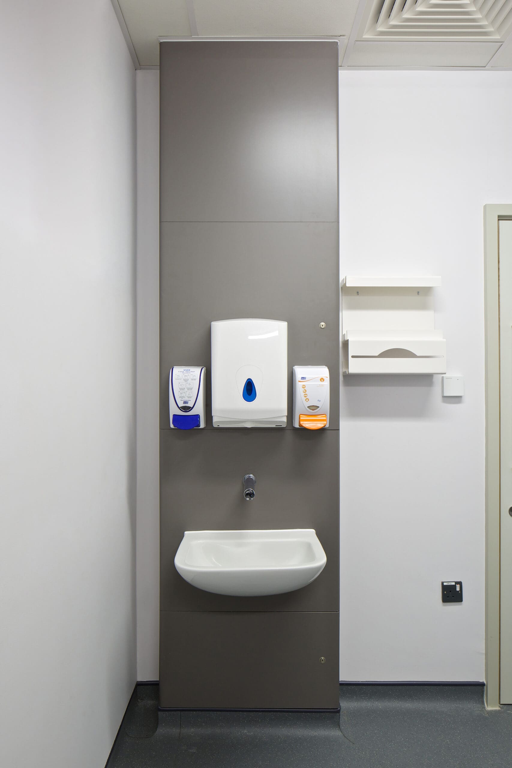 Virseal Ease range of IPS hand-wash stations. An effective and economical range of IPS Handwash stations with postformed hinged access panels fitted neatly in front of the side carcase panels.